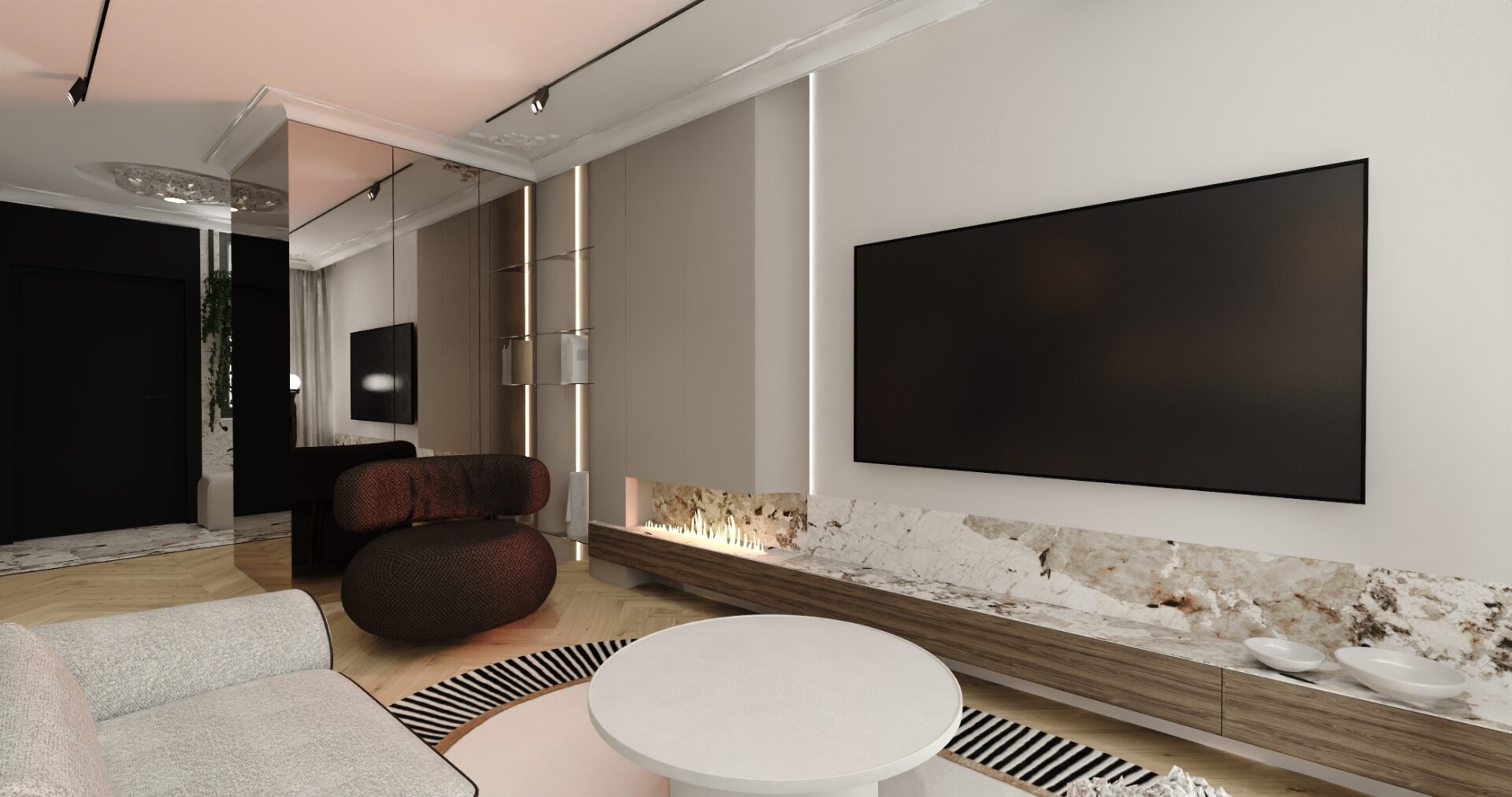 Tworzę układ wnętrza, który łączy ergonomię z codziennym komfortem. Wspólnie dopracowujemy rozwiązania, by przestrzeń była wygodna, praktyczna i zgodna z Twoim stylem życia.